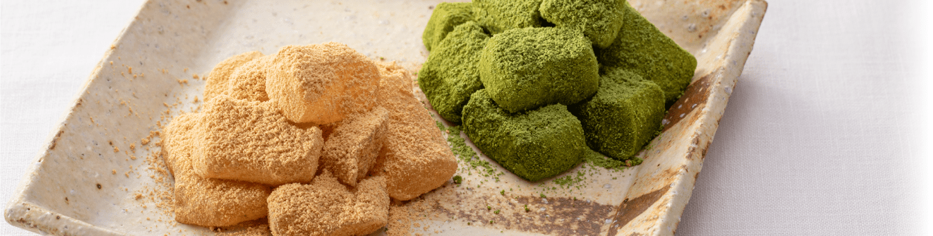 きな粉の変更や、黒糖、抹茶、柚子などを配合するなど、オリジナルのわらび餅を共同で開発いたします。(ロット2tより)